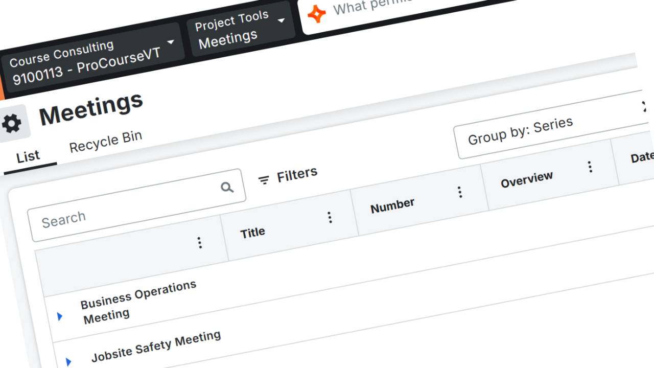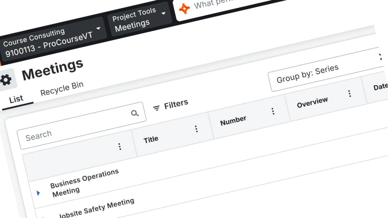 Turn every meeting into a tool for accountability and progress—discover how Procore’s Meetings Tool standardizes agendas, tracks minutes, and keeps your project team aligned.Course OverviewThe Procore Meetings Tool training equips your team to run organized, consistent, and productive meetings. From OAC sessions to toolbox talks, this tool ensures agendas, minutes, and follow-ups are captured in one central place. You’ll learn how to configure the tool, create and manage agendas, assign action items, and track meeting history through follow-ups. By mastering this tool, your team will strengthen communication, improve accountability, and build a reliable record of project discussions.